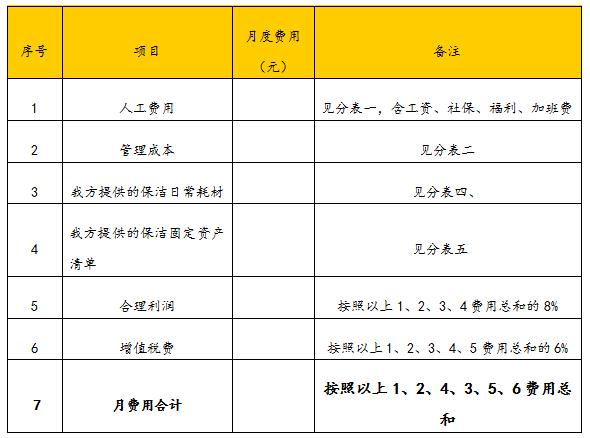 3、其他有償清潔服務(wù)按市價(jià)優(yōu)惠計(jì)價(jià)。